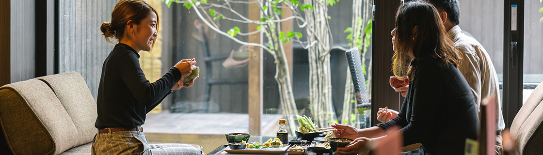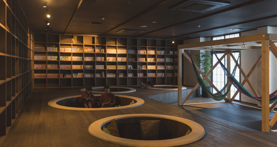 「まるで発酵食品のように一日のんびり」をコンセプトに設計された館内空間。樽型のソファやハンモック、マッサージ機、一人ひとりのプライベート空間を大切にしたスペースであなただけの「自由な休日」を。