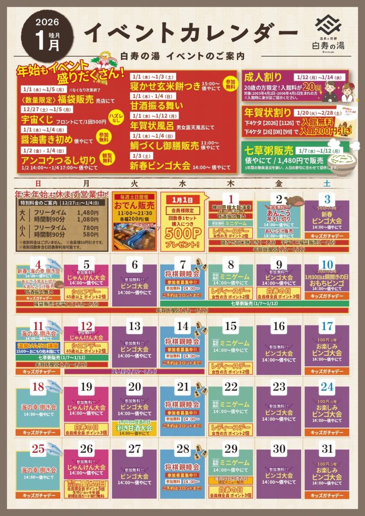 【1月のイベントカレンダーのお知らせです】