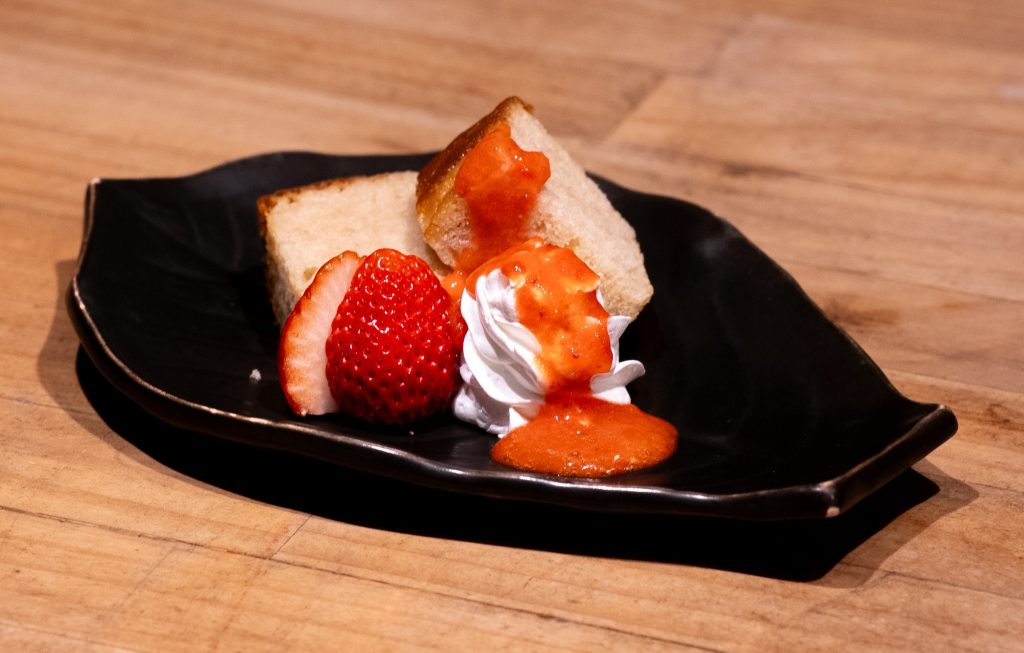 土耕栽培いちごのやさしい甘みと香りを生かし、しっとりと焼き上げた一品。